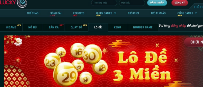 Lô đề 3 miền là những trò chơi số được yêu thích tại nhà cái Lucky88. Các bạn sẽ được một giao diện dễ chơi, dễ chọn số Việt hóa hoàn toàn. Tỷ lệ trả thưởng lớn, cùng vô số trò chơi cực kỳ hấp dẫn. Chắc chắn anh em không nên bỏ qua những khoản tiền thưởng hấp dẫn tại nhà cái.