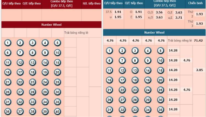 Number Game – Trò chơi dự đoán kết quả quay số. Đánh nhanh, thắng nhanh.Chỉ cần quả bóng dự đoán xuất hiện, Tiền thắng sẽ lập tức thanh toán. Cách chươi đơn giản là thế nhưng nếu anh em không xây dựng cho bản thân một chiến thuật một lối chơi khôn ngoan thì mọi thứ sẽ thành công cốc.