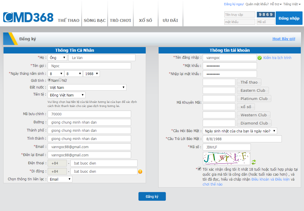 Cách đăng ký tài khoản tại CMD368
