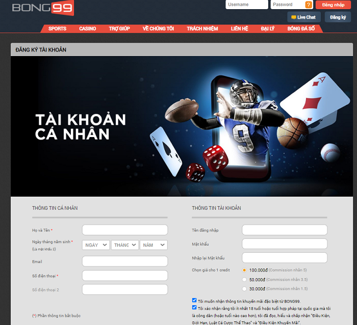Bước 2: các bạn thực hiện điền hoàn tất thông tin theo yêu cầu của nhà cái: