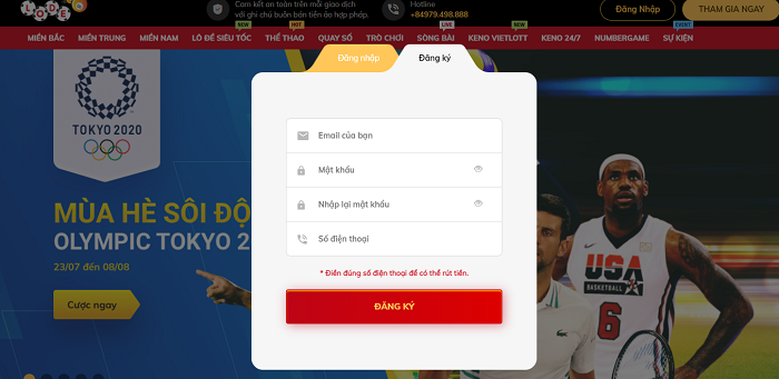 Bước 2: nhấn vào ô Tham gia ngay để thực hiện đăng ký, lúc này bạn cần điền đầy đủ các thông tin theo yêu cầu của nhà cái: