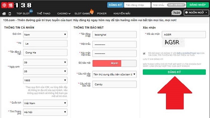 138bet là một trong những nhà cái được ưa thích tại thị trường cá cược Việt Nam. Để trở thành thành viên của nhà cái tiếng tăm này, việc đầu tiên cần thực hiện là Đăng Ký tài khoản cá nhân. Các bước đăng kí như sau:
