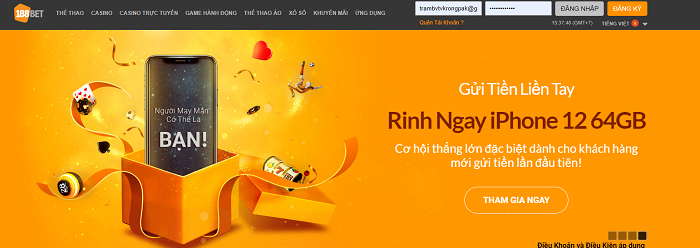 Bước 1: truy cập website ⇒ Đăng nhập tài khoản 188Bet, sau đó bấm vào biểu tượng Gửi tiền và chọn hình thức gửi tiền “VN iBanking”