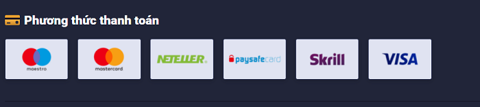 - Thời gian xử lý thẻ từ 2-5 ngày làm việc; 1-3 ngày làm việc đối với chuyển khoản ngân hàng; trong vòng 1 ngày đối với Skrill, PayPal và Paysafecard; ngày làm việc tiếp theo cho Trustly.