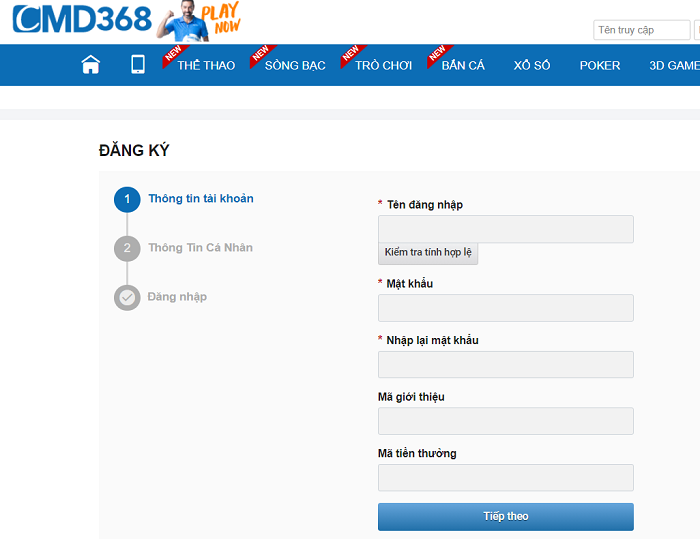Bước 2: Điền thông tin cá nhân theo mẫu form đăng ký Cmd368