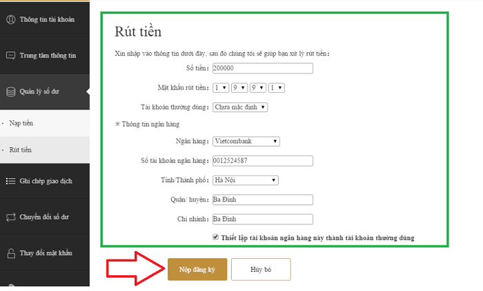 - Số tiền muốn rút: điền số tiền bạn muốn rút về tài khoản