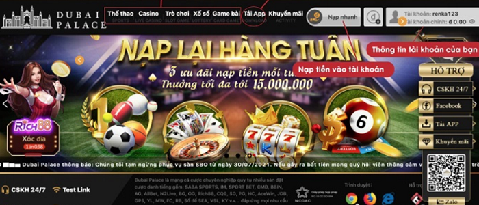 Để có thể bắt đầu chơi cá độ bóng đá hay đánh bài casino ăn tiền tại nhà cái Dubai Palace, bạn cần phải nạp tiền vào tài khoản tại nhà cái này. Việc gửi tiền tại Dubai Palace rất đơn giản và được thực hiện nhanh chóng.