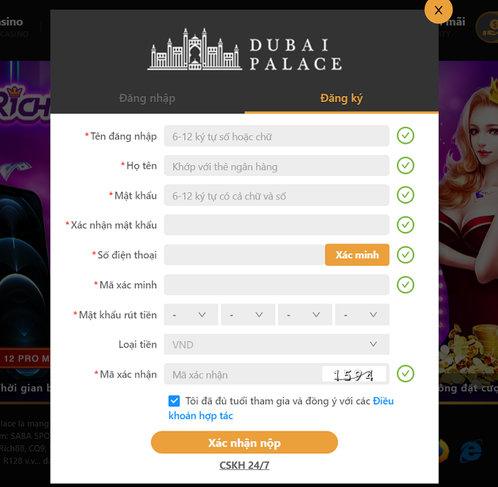 Bước 3: nhấn chọn Xác nhận nộp là bạn đã đăng ký tài khoản Dubai Casino thành công.