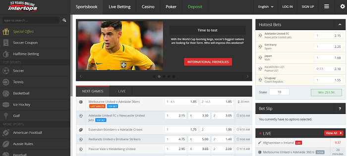 Intertops là nhà cái trực tuyến đầu tiên trên thế giới, giữ được danh tiếng và độ hot đến tận bây giờ không phải là điều đơn giản. Vì vậy, đây nhất định là một trang web tuyệt vời để đặt cược nếu bạn đang có ý định bắt đầu sự nghiệp cá cược thể thao của mình. Chúc các bạn may mắn