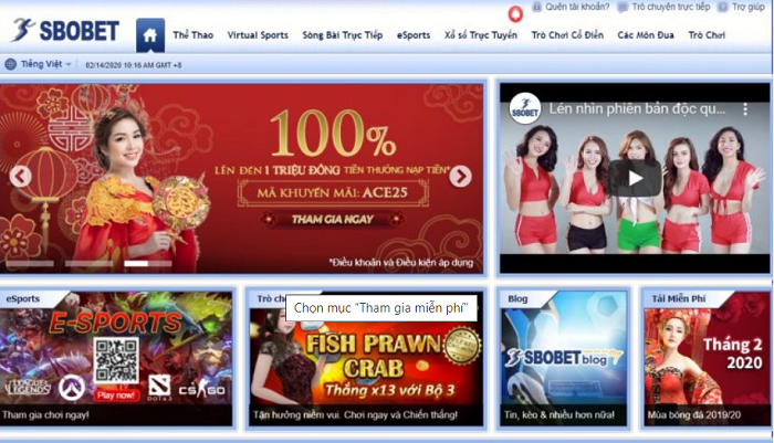 Bước 1: Truy cập trang chủ của Sbobet. Trên góc trái trang chủ Sbobet, các bạn chọn mục “Đăng ký”