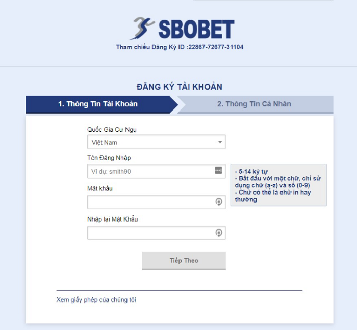 - Tên đăng nhập: bạn chọn tên đăng nhập không chứa ký tự đặc biệt và dài tối thiểu 5-14 ký tự
