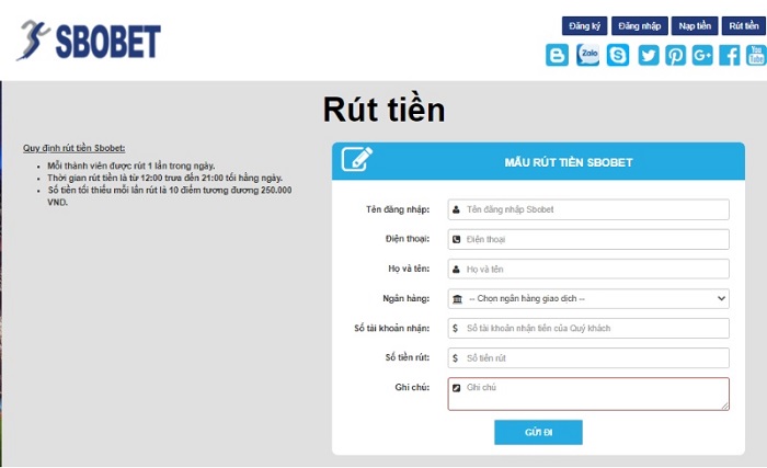 Hướng dẫn rút tiền từ tài khoản Sbobet