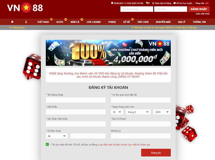 Để có thể trải nghiệm những trò chơi cá cược do nhà cái VN88 cung cấp. Đầu tiên, bạn bắt buộc phải trở thành thành viên chính thức của nhà cái VN88