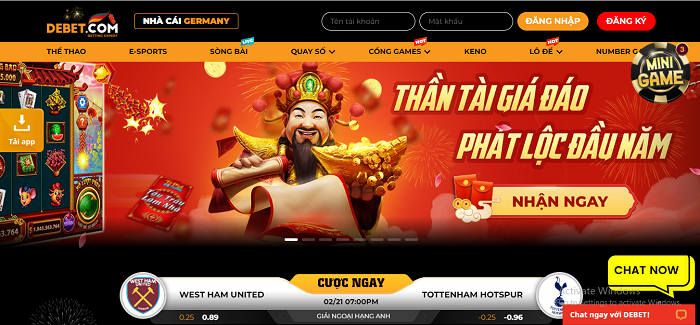 Nhà cái Debet mới du nhập vào thị trường Việt Nam trong thời gian ngắn gần đây. Tuy nhiên nhà cái đã nhận được sự đón nhận của đông đảo cộng đồng cá cược nhờ vào những ưu điểm của mình. Hãy tham gia trải nghiệm tại Debet và làm theo hướng dẫn đăng ký tài khoản để tham gia cá cược thể thao, đánh bài ăn tiền cùng kho tàng game đồ sộ với thiết kế độc đáo nhất tại Debet! Chúc bạn gặp nhiều may mắn!