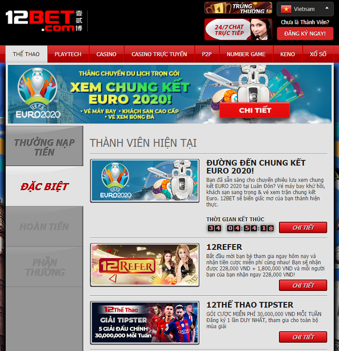Tại 12Bet, người chơi có thể tham gia nhiều dịch vụ cá cược như bóng đá, esports, bóng rổ, casino, Keno,… Để đáp ứng nhu cầu chơi và thu hút thành viên tham gia 12Bet đưa ra rất nhiều chương trình khuyến mãi hấp dẫn được nhiều người hưởng ứng và đón nhận