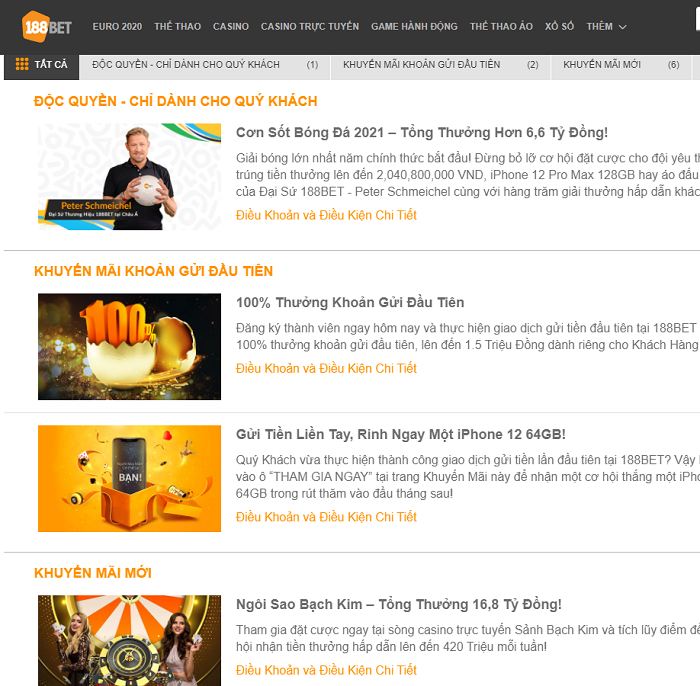 - Không có bất kỳ tài khoản 188bet đã giao dịch nào trước Thời gian khuyến mãi