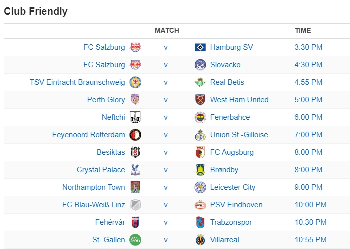 Cập nhật lịch thi đấu mới nhất trong ngày 15/07/2023 đến từ vị trí của nhà cái uy tín Euro888. Hãy cùng chúng tôi điểm qua các trận cầu cực hot để không phải bỏ lỡ bất kỳ trận cầu nào.