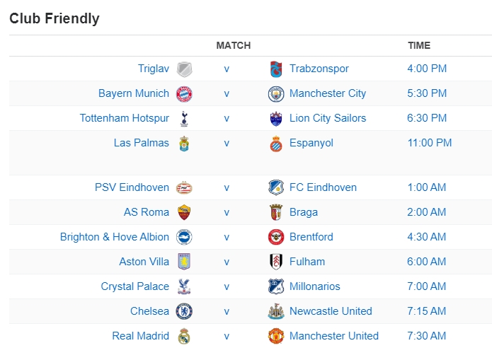 Các trận cầu của World Cup bóng đá nữa vẫn đang diễn ra rất hấp dẫn, được nhiều sự chú ý. Tuy vậy lịch thi đấu bóng đá hôm nay mà các nhà cái uy tín cập nhật tới còn có các trận cầu giao hữu đặc biệt là màn so tài giữa Real Madrid và Manchester Utd.