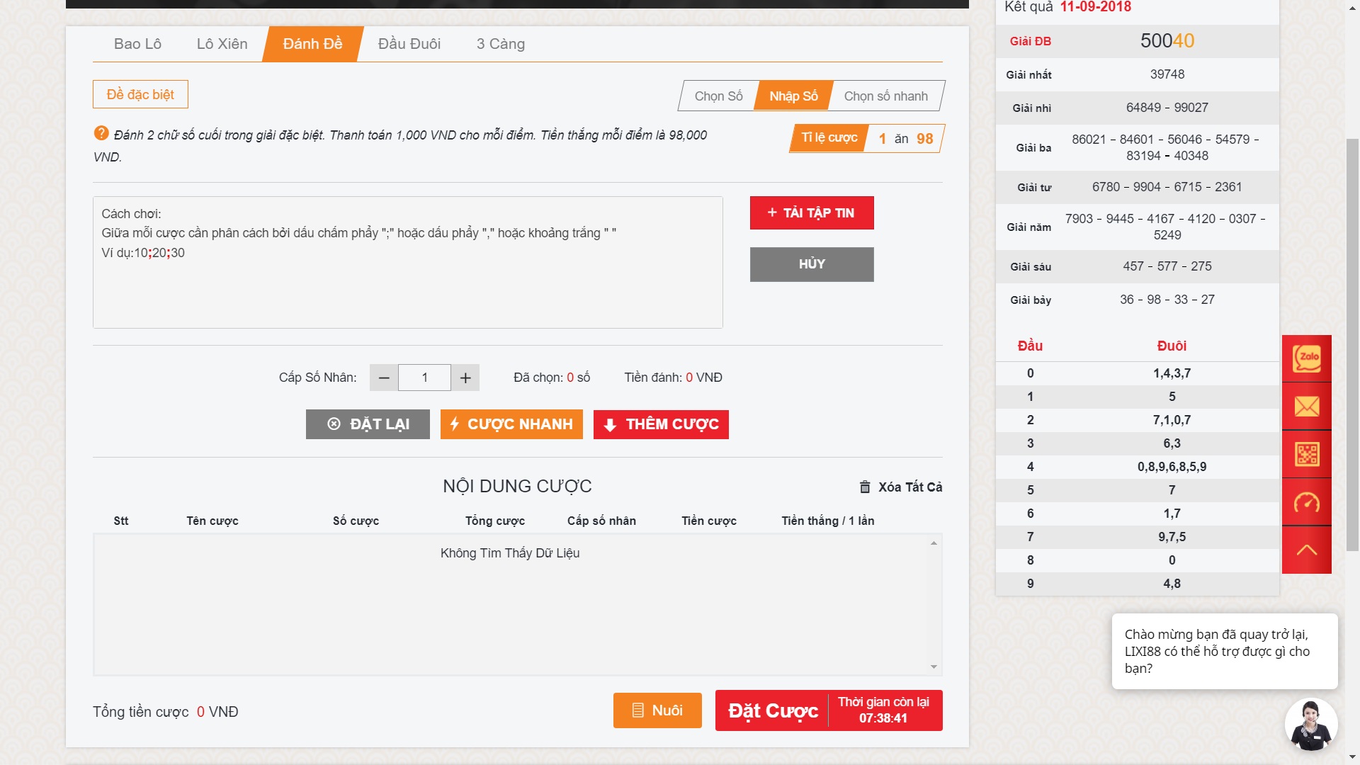 Đáng chú ý hơn nữa Website Lode 88 còn được ví như một diễn đàn để người chơi có thể trực tiếp trao đổi, thảo luận thông qua khung Chatbox hiển thị ở trên trang chủ. Cũng chính vì điều này nên người chơi đặt cược ở mọi miền tổ quốc đều có thể nối được với nhau, cùng nhau trao đổi kinh nghiệm và chỉ cho nhau chiến thuật cược chuẩn nhất.