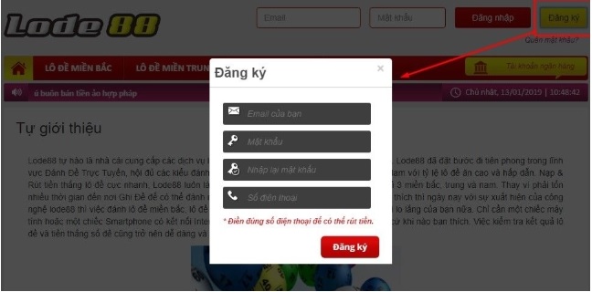 Bước 2: Cập nhật những thông tin cá nhân theo yêu cầu của nhà cái Lode88, bao gồm: