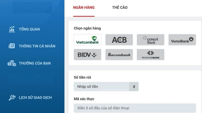 Khi rút tiền, người chơi có thể lựa chọn các phương thức sau: