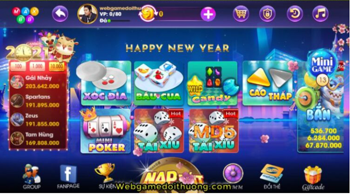 • Minigame: Xóc đĩa, Bầu cua, Mini Poker, Tài Xỉu, Candy, MD5 Tài Xỉu, Cao Thấp,…