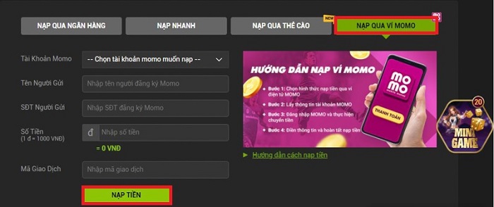 Nạp tiền qua ví Momo
