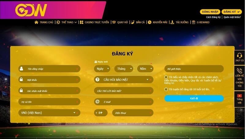 Cách đăng ký tài khoản tại GDWBet