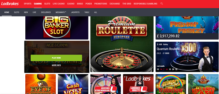 Người chơi có thể chơi hơn 100 trò game slot nếu đăng ký với Ladbrokes, với hầu hết các game slot đều được Playtech cung cấp. Bạn cũng có thể nhận được nhiều bộ phim hoặc các vị trí lấy cảm hứng từ truyền hình, chẳng hạn như Spamalot của Monty Python, Pink Panther hoặc Little Britain. Bạn cũng có những tựa game hàng đầu như Batman and the Joker Jewels và Man of Steel.