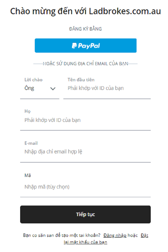 Hướng dẫn đăng ký tài khoản Ladbrokes
