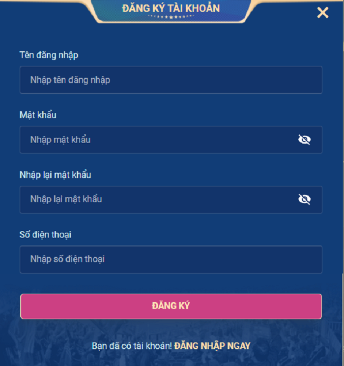 Bước 2: điền đầy đủ thông tin theo yêu cầu của nhà cái: