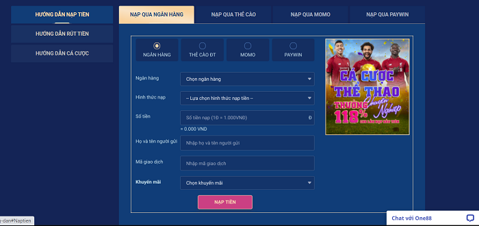 • Ngân hàng: chọn ngân hàng người chơi muốn nạp tiền