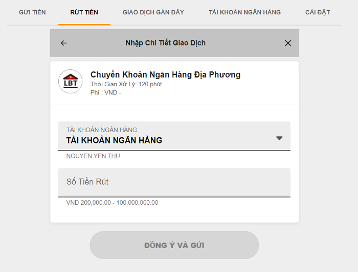 Bước 4: sau khi điền tất cả thông tin, người chơi kiểm tra lại một lần nữa và bấm Đồng Ý và Gửi để hoàn tất giao dịch
