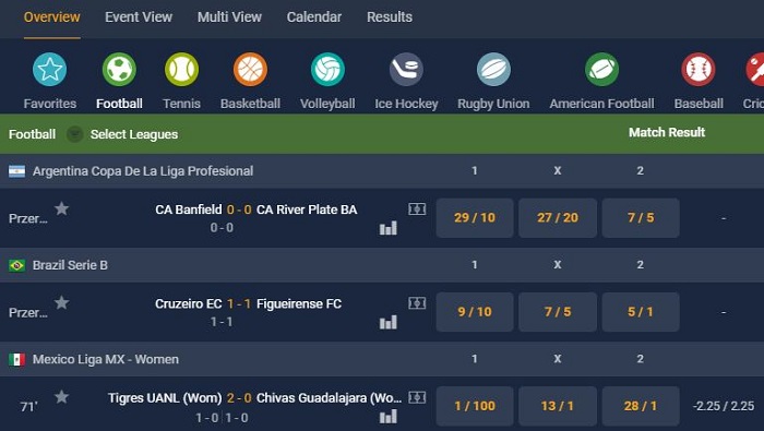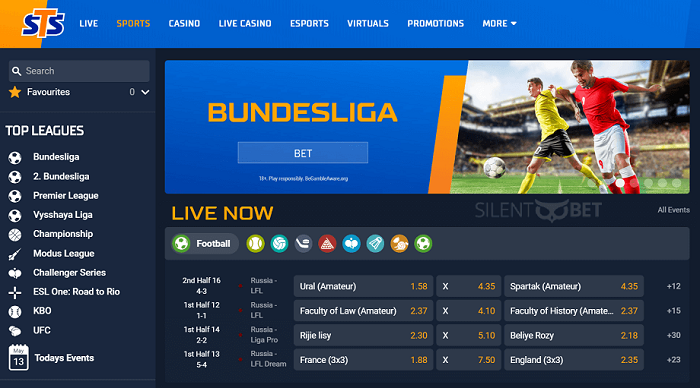 STSbet có tỷ lệ cược cho hơn 50 môn thể thao khác nhau trên trang web của họ và họ tuyên bố cung cấp hơn 50.000 thị trường cá cược trực tiếp mỗi tháng. Điều này có nghĩa là bạn sẽ không thiếu sự lựa chọn khi đặt cược vào các môn thể thao phổ biến như bóng đá, quần vợt, khúc côn cầu trên băng, bóng rổ, Bóng chày, quyền anh, Quần vợt, Phi tiêu, Bida,… trong đó bóng đá là bộ môn được nhà cái tập trung phát triển hơn cả.