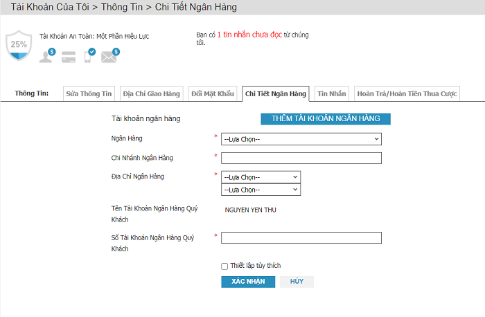 - Chi nhánh ngân hàng: điền chi nhánh ngân hàng nơi mà phát hành tài khoản cho bạn