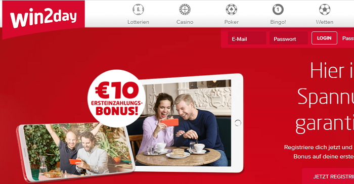 Win2day là một trang web xổ số trực tuyến chuyên cung cấp trò chơi bingo, xì dách, trò chơi có người chia bài trực tiếp, cá cược trực tiếp / trong trận, poker, roulette và thể thao bằng cách sử dụng Evolution, Playtech, Rabcat, Red Tiger Gaming và Thể thao ảo,..là các Phần mềm cá cược được cấp phép tại Áo.
