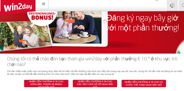 Đặc biệt, đối với người chơi mới ngay khi đăng ký thành công tài khoản cá cược Win2day, sẽ có cơ hội giành được giải thưởng lên đến € 100.000 hoặc hơn thế nữa. Quá trình đăng ký chỉ mất vài phút và bạn đã sở hữu ngay một phần thưởng đặc biệt, rất hấp dẫn đúng không nào?