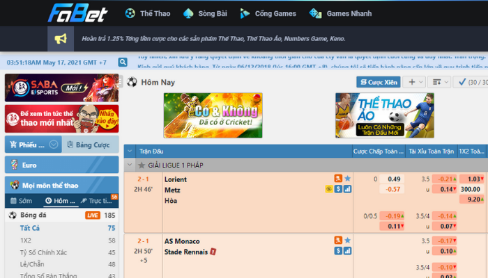 Nhà cái Fabet luôn công khai luật chơi, các quy định tham gia làm thành viên một cách chi tiết, rõ ràng để người chơi nắm được. Sở hữu những game khủng và thịnh hàng trong thị trường cá cược và được các game thủ ưu ái và chọn lựa là nhà cái uy tín bởi số lượng người chơi cực khủng và một chế độ ưu đãi vô cùng có lợi cho người chơi. Hôm nay, Euro888 chia sẻ cho bạn bí quyết chơi cá cược bóng đá ảo tại nhà cái Fabet này.