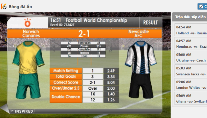 Bóng đá ảo tại Fabet trò chơi đang được rất nhiều game thủ lựa chọn và đang là một hiện tượng nổi đình nổi đám tại các nhà cái tại Việt Nam hiện nay. Trò chơi cá cược thể thao này dựa trên những trận đấu bóng đá ảo với luật chơi đơn giản, kết quả thắng thua nhanh chóng. Tham khảo ngay kinh nghiệm chơi bóng đá ảo tại nhà cái cá cược Fabet để có thêm nhiều mẹo chơi giúp tăng khả năng thắng cược lên tới 60% và mang về lợi nhuận hấp dẫn cho mình.