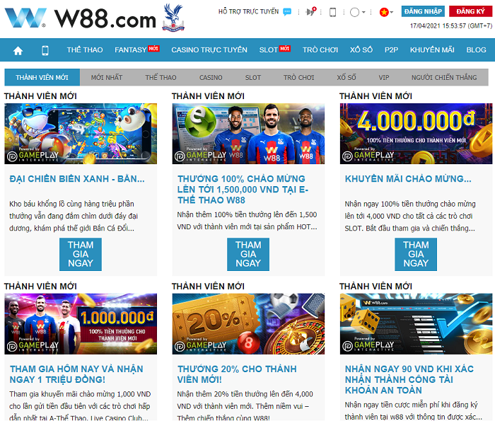 Dù bạn là thành viên mới hay cũ, W88 cũng luôn có những chương trình khuyến mãi cực khủng để tạo điều kiện cho bạn có nhiều cơ hội để trải nghiệm tất cả các sản phẩm ở đây